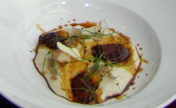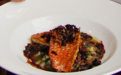La ricetta proposta dallo chef Wolfgang KerschbaumerFiletto di triglia arrostito, su zuppa d'orzo con radicchio