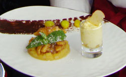 La ricetta proposta dallo chef Anna Matscher'Schupfnudel” con mele caramellate e schiuma di vaniglia e distillato di mele