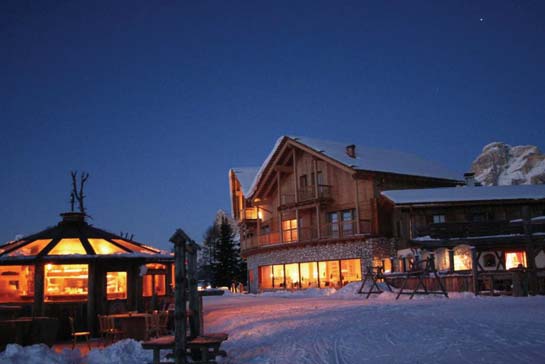 Dall'ampia terrazza della baita, situata al passo Gardena, è possibile godere di una splendida vista panoramica sul gruppo del Sella. Completamente rivestita in legno, rispecchia la semplicità dell'architettura montana. una particolarità del rifugio sono le grappe fatte in casa.