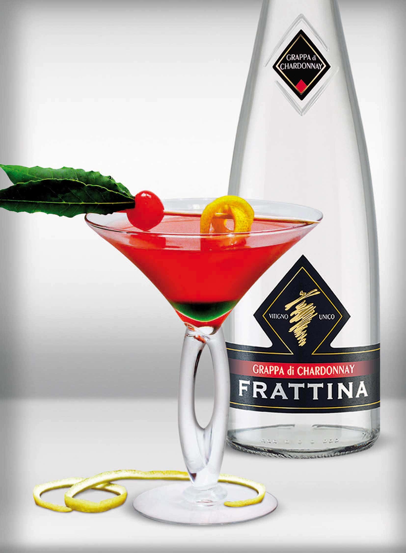 E non preoccupatevi se dovesse cadervi qualche goccia di grappa Frattina: per valutare se una grappa è di qualità, un gesto tipico da intenditore è versare una goccia sul dorso della mano, strofinare ed annusare. Sentirete al naso tutta l'armonia e la delicatezza dei profumi del frutto da cui proviene il distillato, lasciando sulla mano un piacevole e persistente profumo. Morbida e delicata, elementi ottenibili unicamente dalla distillazione di una sola qualità di uva, Grappa Frattina è leader nel comparto monovitigno e con un livello qualitativo eccellente. E solo il leader poteva offrire la possibilità di gustare un nobile cocktail: Rosso Verde Frattina.