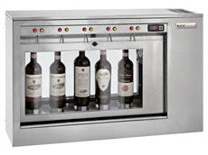 Si chiama Eurobottle C5B (nella foto a destra), la climatizzata bifacciale 5 vie dell'azienda EasyWine (www.easywine.it). Il dispenser è predisposto per contenere 5 bottiglie di riserva. Il sistema di erogazione garantisce la quantità della dose selezionata, senza più sprechi o sovradosaggi, assicurando in tal modo la redditività stessa della bottiglia. Tre diverse dosi di servizio. Date le dimensioni contenute della macchina è possibile collocarla pressoché ovunque. Erogazione semplice tramite 'un click” e adattabilità a vari formati e tipologie di bottiglie. Grazie al particolare sistema di aggancio, le bottiglie, una volta aperte non vengono manipolate evitando quindi qualsiasi tipo di contaminazione. Inoltre, il sistema di defrost automatico e l'autopulizia delle parti eroganti garantiscono un'igiene massima.