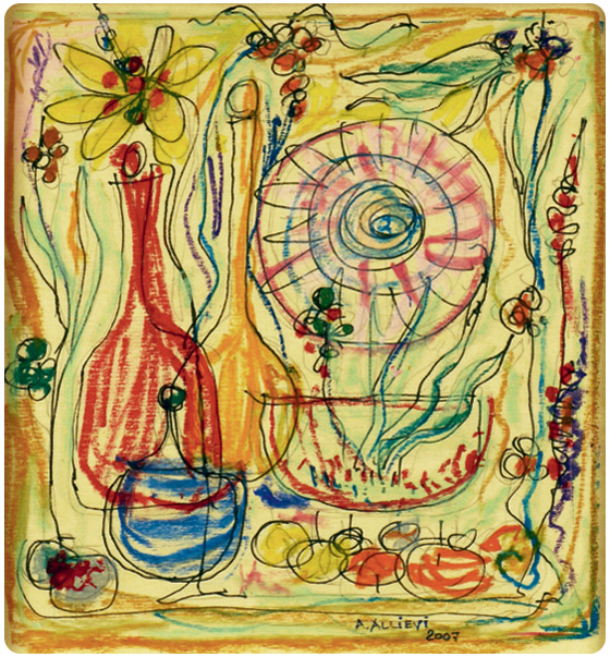 Composizione floreale (2006)Attilio Allievi (1923)Vedi la galleria pubblicata sino ad ora:1000 artisti a TavolaPer conoscere il progetto '1000 artisti a Tavola” vedi: Arte contemporanea al ristorante. Nuovo progetto di Italia a Tavola