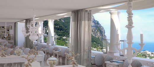 «C’è una sorta di osmosi tra stile e concept gastronomico», dichiara Esposito riferendosi all’ambiente e all’arredo, che è giocato sui colori tenui del bianco e beige, con richiami all’azzurro del mare di Capri. Invariata è l’incomparabile vista del Golfo di Napoli e dello scorcio sulla Piazzetta che si può godere dall’ampia terrazza. Un’altra novità è la gestione anche dello spazio destinato a pizzeria: adiacente al ristorante, l’ambiente è caratterizzato da volte seicentesche, dove ancora è in funzione l'antichissimo forno a legna. Qui Gennaro Esposito proporrà la tradizionale pizza napoletana e una selezione di fritti.