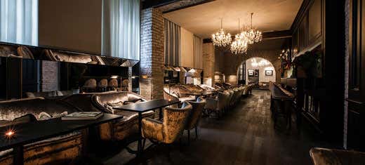 In accordo con la vocazione estetica dell’albergo, tra divani in velluto di seta, lunghe tende dalle nuance notturne che fungono da quinte, tre preziosi “Ladies and Gentlemen” di Andy Warhol, chandelier di cristallo, e grandi specchiere in stile veneziano che sollecitano la comunicazione non verbale, The Deer Club accoglierà i suoi ospiti come nel salotto di un’aristocratica dimora privata, tutti i giorni, dall’aperitivo al dopocena.