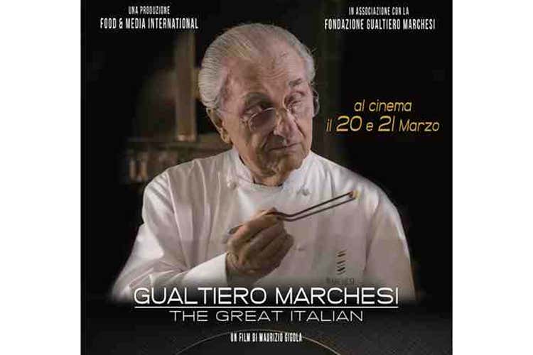Il 20 e il 21 marzo Gualtiero Marchesi The Great Italian sarà proiettato nei cinema italiani. Il film è stato realizzato grazie al sostegno di Cantine Ferrari, Illycaffè, Parmigiano Reggiano e S.Pellegrino.