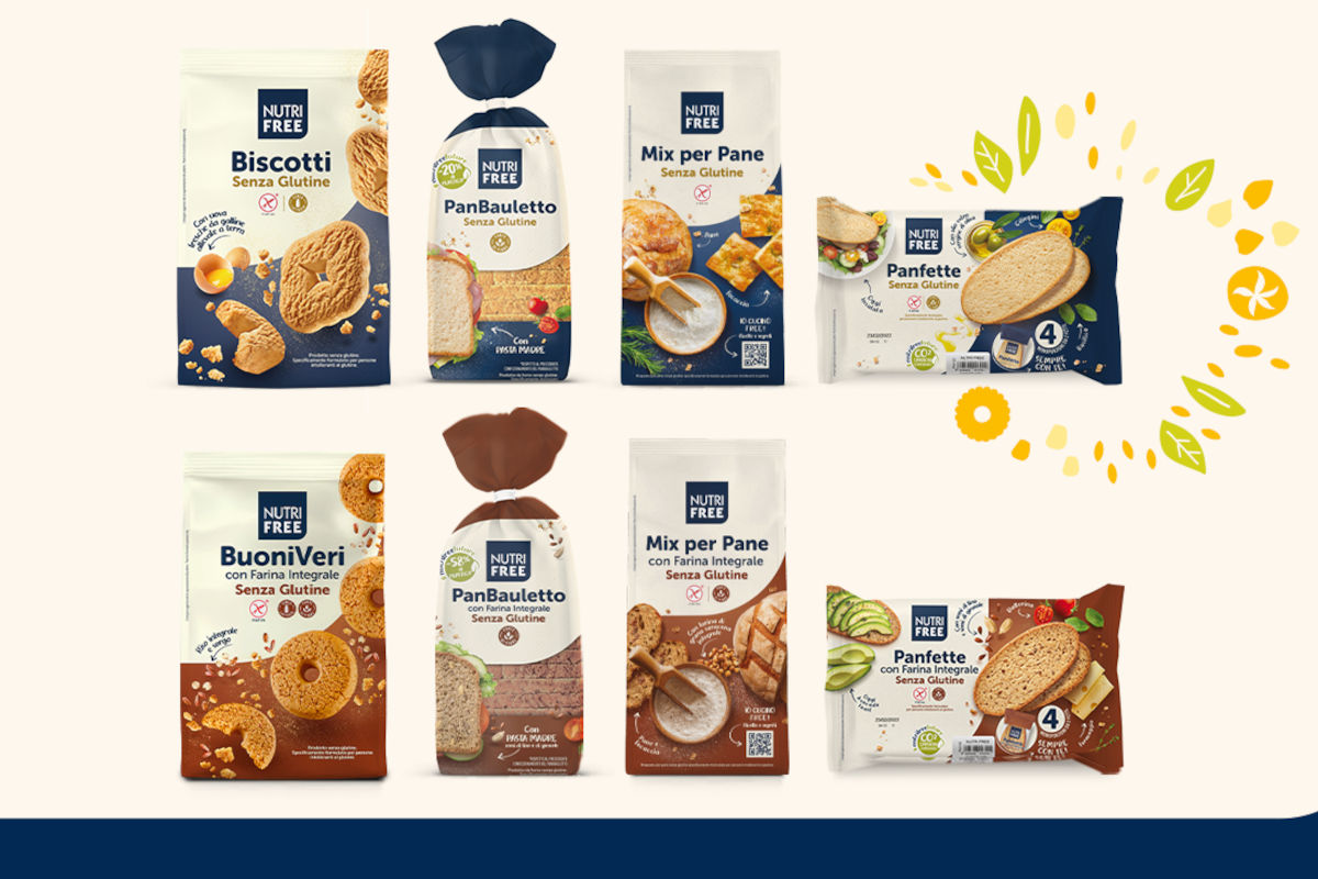 Il restyling del pack system, in coerenza con il nuovo posizionamento “Sorridi è Nutrifree” lavora su referenze fortemente riconoscibili a scaffale mettendo in primo piano il sapore e il piacere che questi prodotti possono offrire ai propri consumatori. Il mercato del “senza” è cambiato molto negli ultimi anni, in termini di distribuzione e percezione. La nuova identità di Nutrifree risponde alle esigenze di un target evoluto sempre in cambiamento, attraverso elementi grafici semplici che concentrano l’attenzione sul racconto degli ingredienti eroi e sui loro benefit.