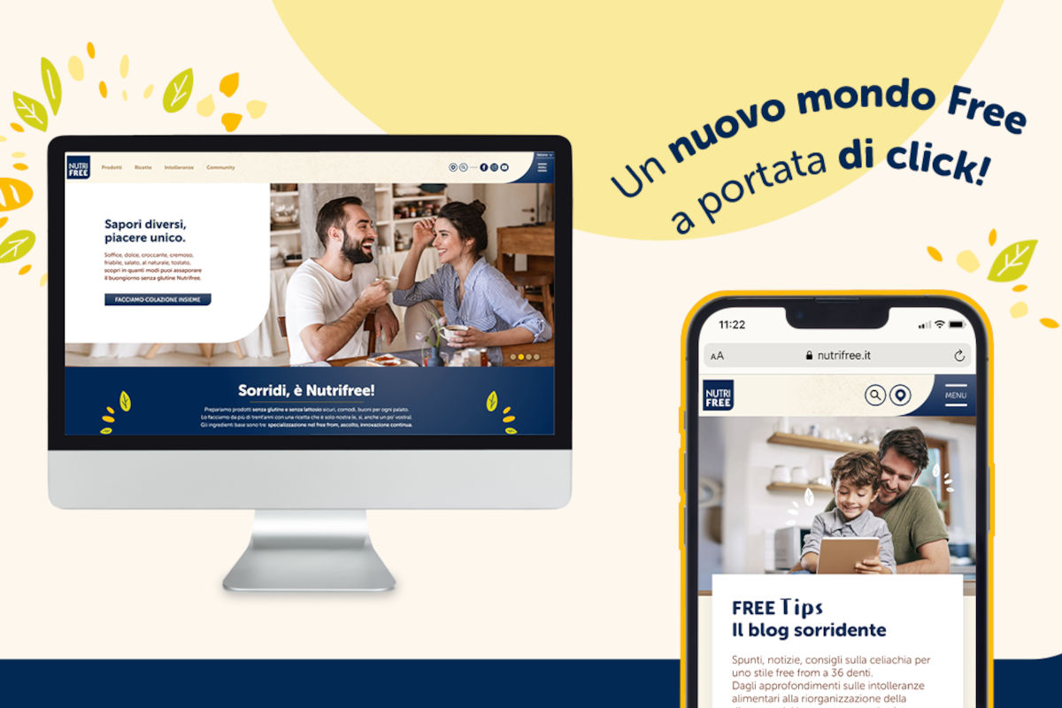 In continuità con il pack system e con il nuovo posizionamento, è stato adeguato anche il sito web che presenta una visual identity totalmente rinnovata con uno spazio dedicato allo storytelling del brand. La user experience è snella e progettata intorno alle esigenze del consumatore con filtri ricerca sia lato prodotto che ricette. La sezione “Sorridi è Nutrifree” presenta il manifesto della marca e racconta un mondo “senza” colorato e pieno gusto.