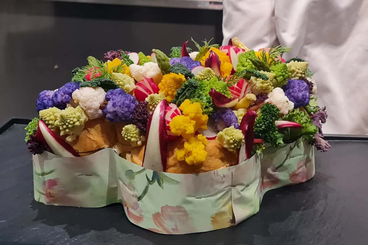 Di grande effetto per la presentazione insolita, quella del pasticcere padovano Denis Dianin, in tre strati differenti per valorizzare le eccellenze del territorio veneto: battuta di Sorana veneta, tartufo nero e maionese leggera al rafano padovano; gallina padovana in saor ed il suo foie gras, infine la uova, asparagi di Pernumia e sardina di Chioggia marinata. Solo su prenotazione.