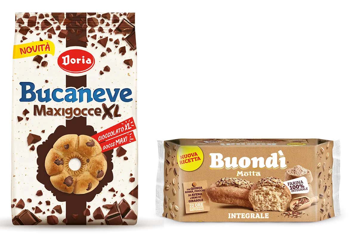 Buondì Motta Integrale: ricetta nuova, con farina 100% integrale e glassa originale da un mix di semi di girasole, fiocchi d’avena e quinoa rossa. Nuovi anche i Bucaneve Maxigocce XL Doria, con grandi gocce di cioccolato
