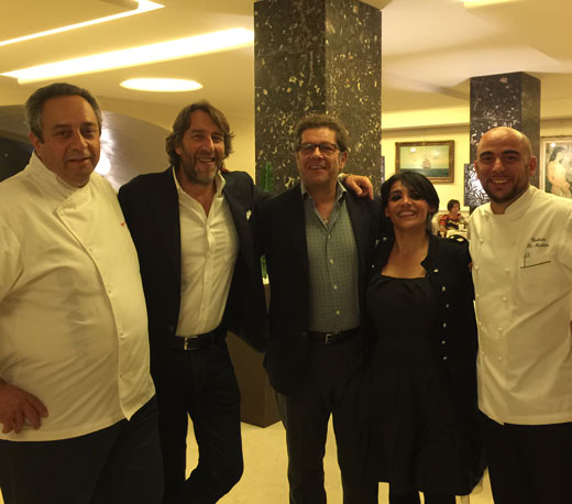 Giuseppe Aversa, 1 stella Michelin, chef patron del ristorante Il Buco di Sorrento, un compaesano di De Martino. La serata è stata perciò un festival della cucina partenopea: gamberi rossi scottati, morbido fior di latte e caponata napoletana; pasta mista di Gragnano in brodo affumicato con patata viola e frutti di mare; Sua Maestà il ragù napoletano “in solitario” (carne di vitello, agnello e maiale); per finire pastiera napoletana e babà mignon.