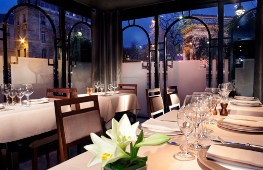 L’hotel dispone anche di una piccola sala per riunioni, piccoli eventi o cene private da 40 metri quadrati, luminosa e configurabile in maniera variabile da 20 persone sedute ai tavoli fino a una trentina a teatro. Il ristorante al piano terra, sulla destra della reception è utilizzato anche per la prima colazione, si chiama Le Pré Carré. Si estende anche sul marciapiede del viale con un’ampia veranda, come tipico di tanti Café de Paris. La cucina è decisamente francese, adatta all’ambiente, e dai tavoli in veranda si gode di una magnifica vista sull’Arco di Trionfo.