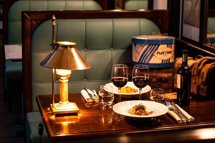 Cucina da prima classe sul binario del gusto. Siamo a Roma, in zona Termini e potremmo sbagliare entrando in questo locale, perché sembra di salire a bordo di un treno d’altri tempi, stile Orient Express. Hespresso riparte con una nuova formula, Blue Train, che coniuga i piaceri del palato alla buona musica live in un locale dall’ambientazione affascinante. Lì dove anni addietro c’era un cts studentesco, l’architetto Andrea Terranova ha ricreato una stazione ferroviaria squisitamente vintage.