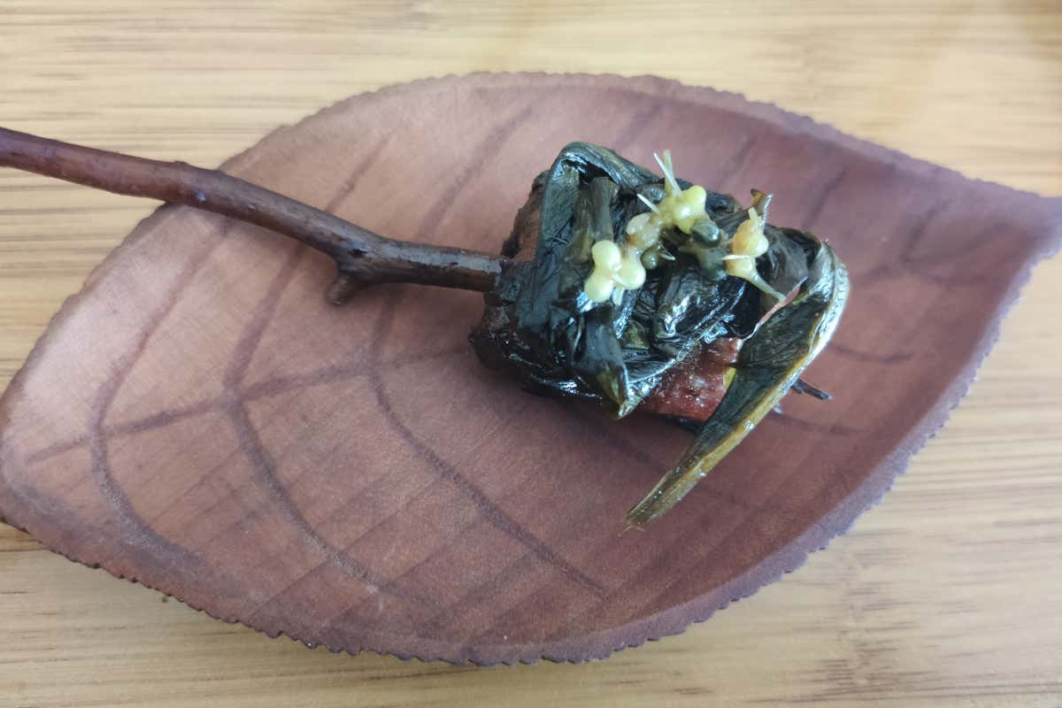 «Il foraging - puntualizza Mirko Gatti - è un’attività che richiede una preparazione seria, perché ovviamente non tutto si può raccogliere in qualunque stagione. Bisogna fare delle scelte e documentarsi per bene prima di tagliare, scavare e strappare: a volte facendo attenzione a non togliere la radici, a volte aiutando la pianta a produrre di più perché la liberi al momento giusto dei boccioli. Negli ultimi tempi stiamo lavorando molto sulle specie aliene e invasive, che in ambito vegetale rappresentano una sfida simile a quella che il famigerato granchio blu, ovvero il gambero della Louisiana, pongono in campo faunistico. Prendiamo ad esempio questo Poligono del Giappone, che viene dall’Oriente e si diffonde con grandissima facilità: è un tipo di rabarbaro selvatico, presente ormai in tutta Europa, in grado di penetrare dappertutto facendo danni notevoli non tanto all’ecosistema in sé quanto alle opere edilizie, all’asfalto, alle piastrelle, ai muri di mattoni: oltre ad essere inarrestabile, è quasi inestirpabile grazie alle radici che scendono fino a otto metri. A fine Febbraio produce dei germogli, somiglianti ad asparagi bianchi, e come tali si cucinano: quando cresce la pianta, fino a diventare un arbusto, i rametti giovani e teneri, croccanti e aciduli, si possono fare a rondelle per guarnire una tartare o del pesce marinato. Ma si possono usare anche le foglie più tenere, da friggere in pastella. Su questo pendio, più in basso, potete vedere il Topinambour selvatico, che non troverete mai in fondo al bosco o in un alpeggio, ma piuttosto vicino a un casolare abbandonato o al margine di una strada di collina. Il gusto è quello classico, carciofoso, più intenso di quello che si porta a casa dal supermercato: a novembre in genere vengo qui e scavo per estrarre il tubero dal terreno. Si usano pure le foglie, che sanno anch’esse di carciofo, arricchito da una nota vegetale/minerale più intensa, quella che è comune negli spinaci, tanto per intenderci. Ecco poi la pianta del Nasturzio: utilizziamo il gambo, per le sue note speziate e piccanti, che ricordano la senape, ed una volta sfiorito il fiore vengono fuori i semi, che facciamo fermentare come se fossero capperi».