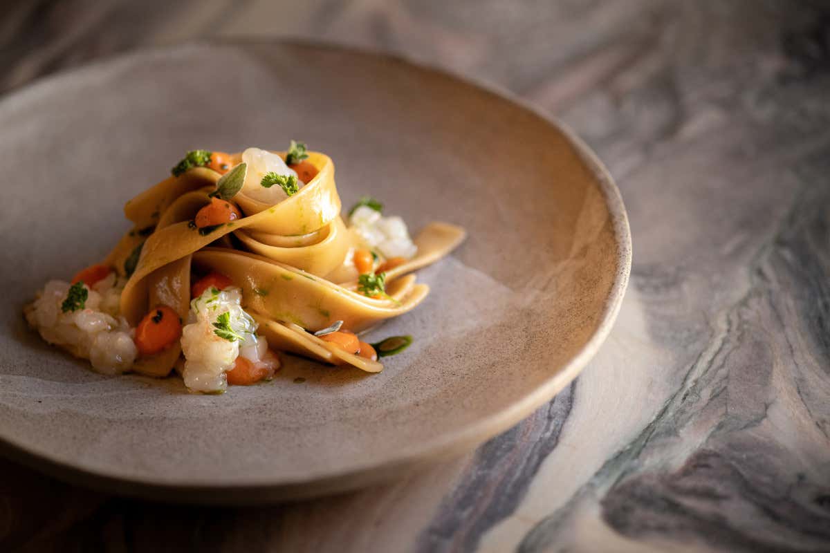 «Ho voluto semplificare le lavorazioni e abbreviare le preparazioni, lasciando spazio alla riconoscibilità del gusto» spiega Sodano, che per questa esperienza si è momentaneamente allontanato dagli elementi più sperimentali della sua cucina, come miso, garum e lattofermentazioni, per concentrarsi sulla valorizzazione degli ingredienti italiani.