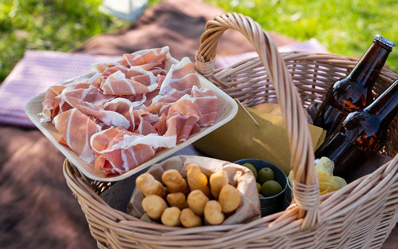 Il cestino offerto agli ospiti: prosciutto San Daniele, bevande e specialità del territorioSuggestivo scenario dell’iniziativa saranno i parchi e i giardini botanici di quattro dimore storiche: il Castello di Collegno a Torino, Villa Viviani a Firenze, Villa dei Cesari a Roma e la Terra degli Aranci a Napoli. I partecipanti riceveranno un cestino per due persone dentro al quale troveranno prodotti tipici del territorio, bevande e una degustazione di Prosciutto di San Daniele. Ogni partecipante avrà un plaid riservato, posizionato in modo da garantire un adeguato distanziamento interpersonale.