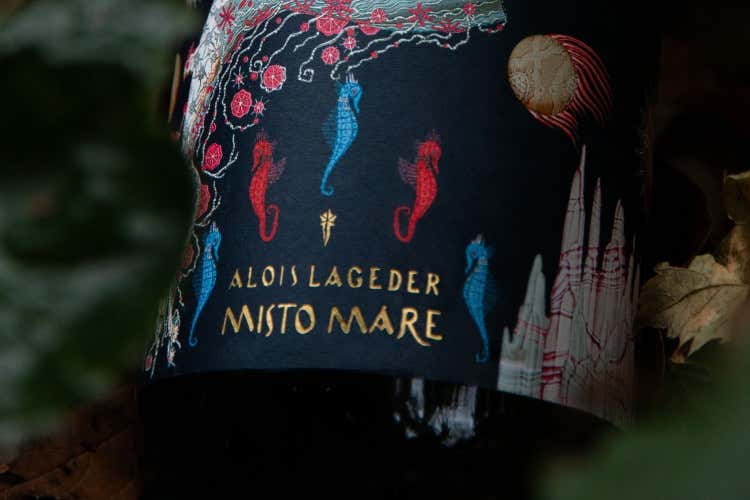 Il nome del vino rimanda direttamente alle origini geologiche dell'Alto Adige. Circa duecento milioni di anni fa, l'area era sommersa dal mare, i cui sedimenti hanno contribuito alla formazione delle Dolomiti. Un richiamo che si riflette anche nell'etichetta, realizzata dal celebre artista finlandese Klaus Haapaniemi: «Visitando la tenuta Alois Lageder in Alto Adige, l'impatto visivo delle Dolomiti, con le loro vette frastagliate che si stagliano nel cielo, è straordinario. Che sia sotto il sole, la luna o tra le nuvole, il paesaggio è affascinante. Il suolo vulcanico aggiunge un'ulteriore dimensione alla storia di queste montagne, un tempo sommerse dal mare. Nella residenza Casòn Hirschprunn della famiglia Lageder a Magrè, ho scoperto antiche carte da parati barocche, che hanno ispirato il design dell'etichetta di Misto Mare. Ho percepito come, seguendo i ritmi della natura, lavorando in armonia con i cicli planetari e collaborando con i viticoltori locali, i Lageder abbiano dato nuova vita all'arte e alla scienza della vinificazione» ha raccontato Haapaniemi.