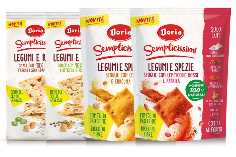 I nuovi Doria Semplicissimi Legumi e Riso e Legumi e Spezie sono l’alleato perfetto per un break all’insegna del benessere, uno stuzzicante aperitivo homemade tutto naturale o per accompagnare il pasto con un twist di croccantezza e bontà.