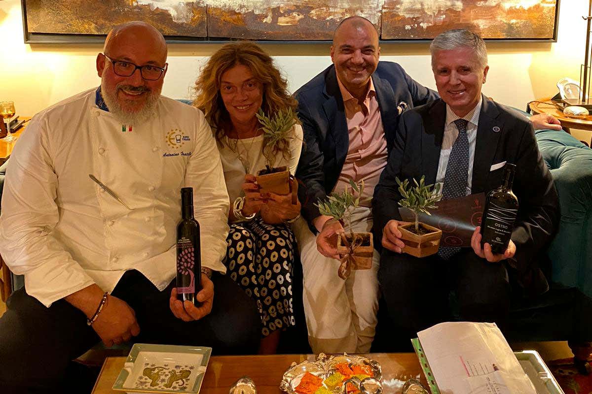 Quindi si è passati alla degustazione di 6 oli Evo, Degustazione di vino - olio e piatti per comprendere l’abbinamento migliore. Brindisi con 3 diversi spumanti degustati da Alessandro Scorsone, sommelier Ais Bibenda e gran cerimoniere di Palazzo Chigi. Ai fornelli, Antonino Fratello, delegato Euro-Toques per il Lazio, chef consultant siciliano di origine ma romano d'adozione. Una cucina, la sua, che ricerca sempre il gusto e l'autenticità dei sapori senza stravolgere la classicità delle ricette. Ecco perchè i suoi piatti hanno esaltato al meglio il senso della serata.