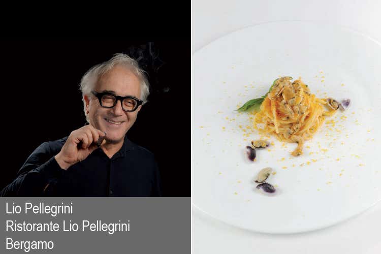 Un piatto di Lio Pellegrini, chef del ristorante Lio Pellegrini di Bergamo.