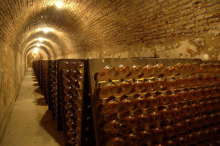 Splendide le cantine, dove opera ogni giorno il garante dello stile di Roederer, lo chef de caves Jean-Baptiste Lecaillon, temperatura costante tutto l’anno di undici gradi, qui arrivano i mosti ottenuti dai tre centri di pressatura, Verzenay, Ay e Avize, conservati in 450 tini termoregolati, ognuno dei quali contiene una parcella che rimane divisa fino al momento dell’assemblaggio. Oltre ai tini troviamo in una apposita cantina anche 150 botti grandi prodotte con le querce delle migliori foreste dove vengono conservati i vins de réserve.
